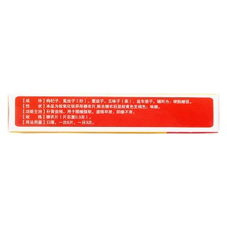 【药品成份】枸杞子、菟丝子(炒)、覆盆子、五味子(蒸)、车前子(盐水炙)。