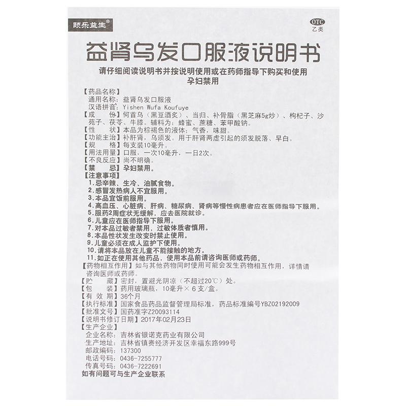 | 药名品牌 | 益肾乌发口服液(颐乐益生) |