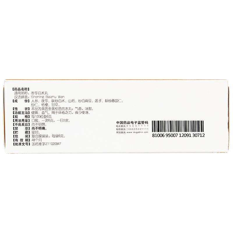 【主要成份】人参、白术(麸炒)、茯苓、山药、薏苡仁(炒)、莲子、白扁豆(炒)、砂仁、桔梗、甘草。