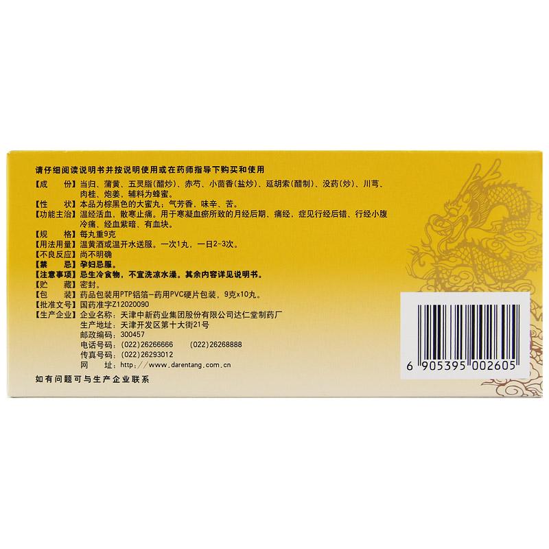 【药品成份】当归、蒲黄、五灵脂、赤芍、小茴香、延胡索、没药、川芎、肉桂、炮姜;辅料为蜂蜜。